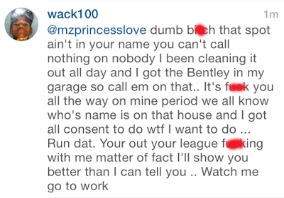 Rumor has it that Ray J is really done with Princess for good and even reclaimed her Bentley. We spotted these screenshots over at Baller Alert which say he was seen with another woman over the weekend and his manager Wack 100 has cleaned out Princess’ crib AND garage.