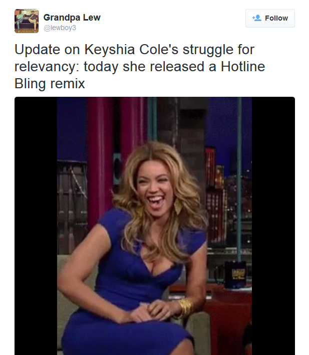 Struggle squawktress Keyshia Cole added another “L” to her steadily growing collection by remixing Drake’s latest smash “Hotline Bling” that sparked endless slander from, well, everyone.
