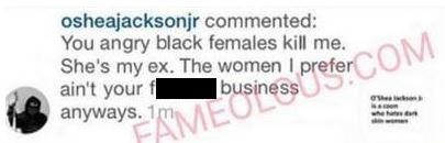 Fameolous then posted a tweet allegedly from O’Shea of his blasting “angry black females” for dissing his ex.