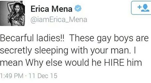 Erica must still be seething because she recently took to Twitter to blast down-low boys who hire gay men just to smash them.