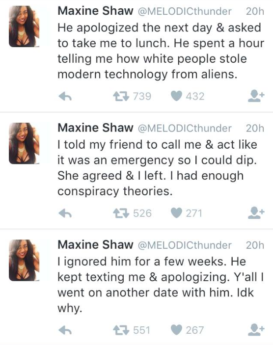Hotep Twitter is really an amazing, hilarious place. These “woke” brothers tend to aim their wokeness at denigrating Black women from time to time. However, one woman decided to still go out on a date with one of these men. Here name is @MELODICthunder and her story is fantastic. Take a look at the comedy.