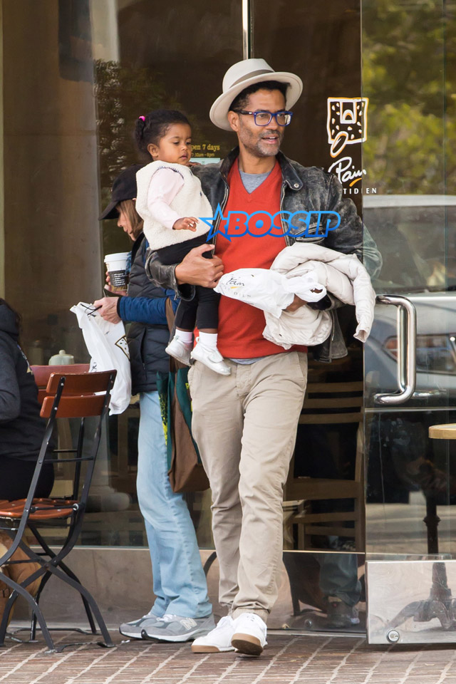 Eric Benet was snapped by the paps leaving Le Pain in Calabasas Commons with a to-go order and his arms full of toddler daughter Amoura Luna.