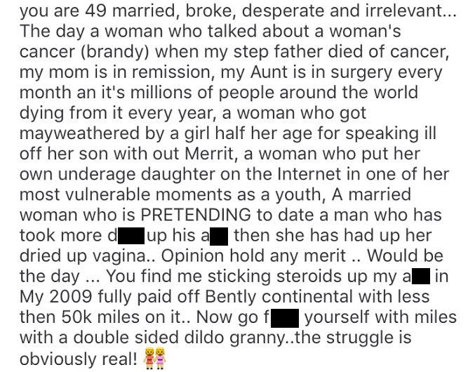 Things then got especially messy when Milan took a low blow at Miles’ new “boo” Sundy Carter.