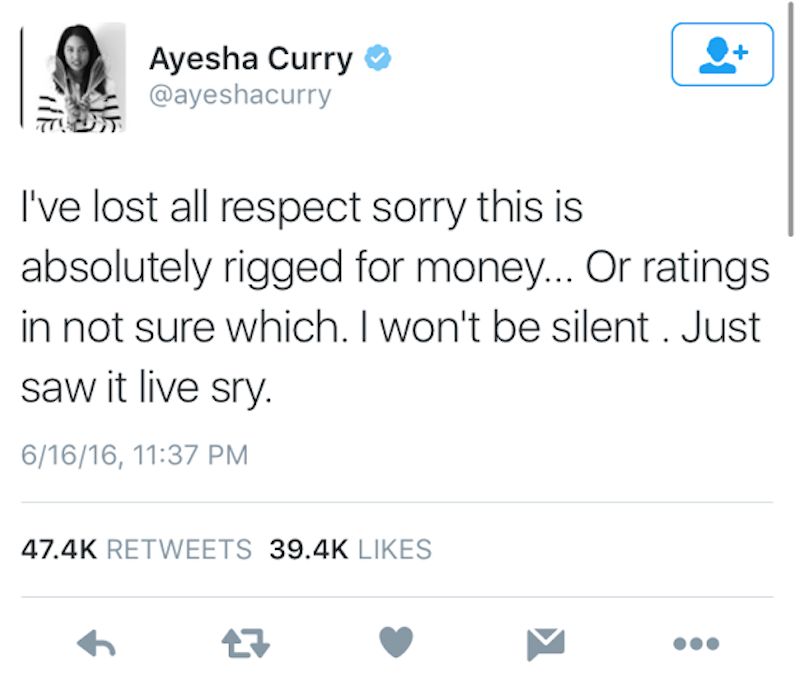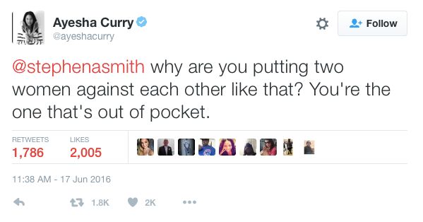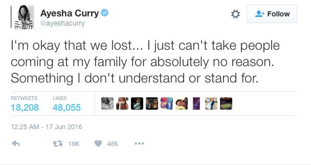 Immediately, Ayesha Curry jumped into a phone booth (Twitter) and donned a cape for her man in 140-characters or less.