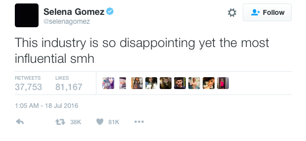 Selena tweeted this to distract from the Swift slander-party taking place on social media: