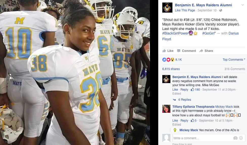 #BlackGirlsRock: Benjamin E. Mays High School Celebrates Female Football Player Chloé Robinson