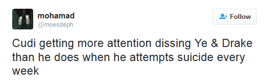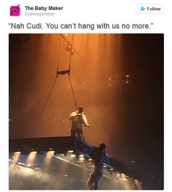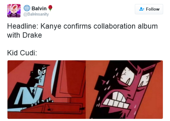 Famously dysfunctional rap-singer-something Kid Cudi is making headlines once again for something other than his music after letting his moon dusty Twitter fingers fire not-so-subtle shots at on again, off again BFF Kanye and Drake in a bizarre moment that sparked hilarious chaos on social media.