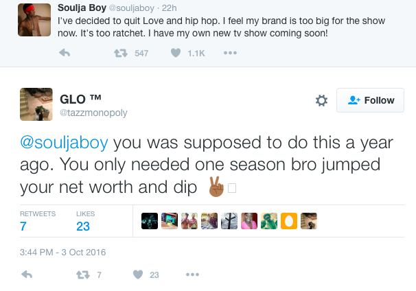 Do you think Soulja Boy will really walk away from the show or nah?