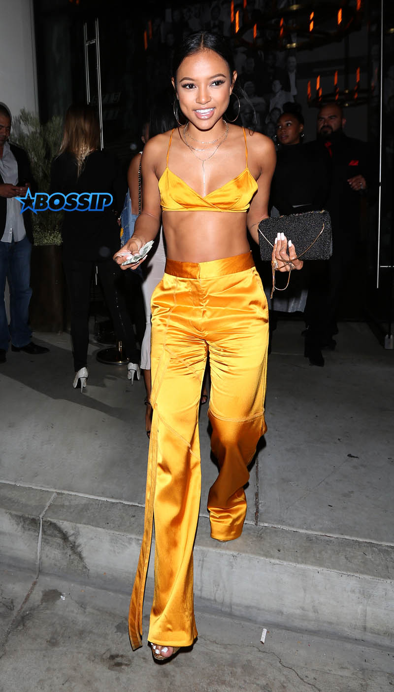 Besties Karrueche Tran and Christina Milian hit up West Hollywood hotspot Catch LA for dinner Friday. Karrueche was definitely feeling festive in this marigold silk two piece getup. You like?