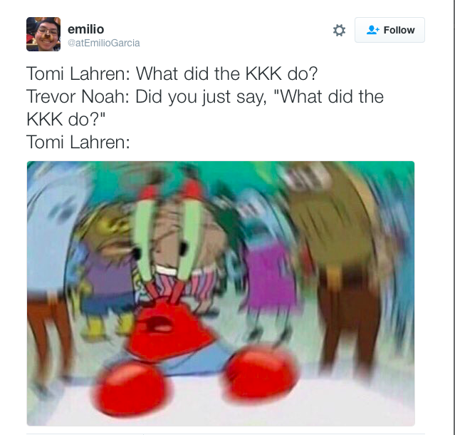 Trevor Noah had perennial right-wing white supremacist sympathizer Tomi Lahren on his show last night to discuss their political differences. Noah kept it classy and absolutely eviscerated Lahren.