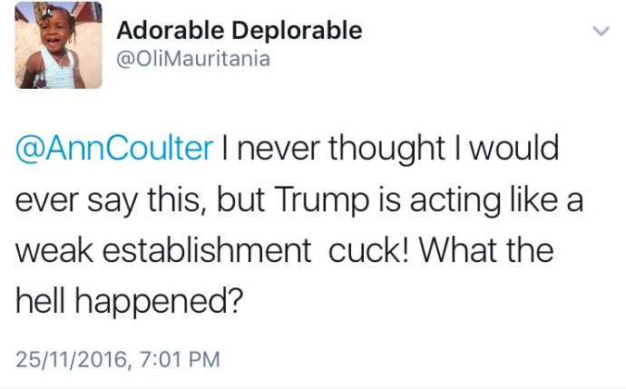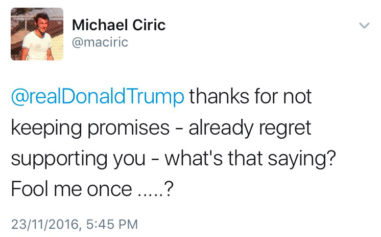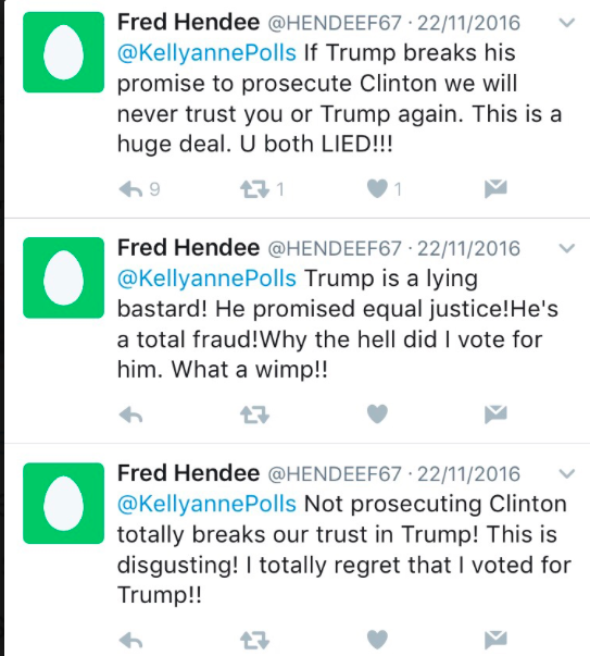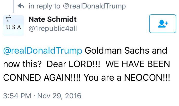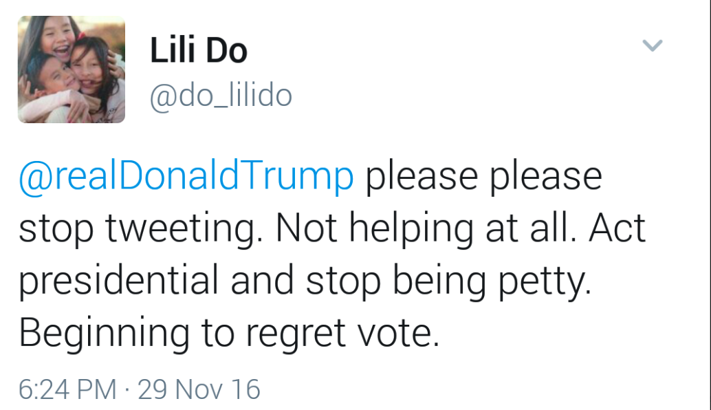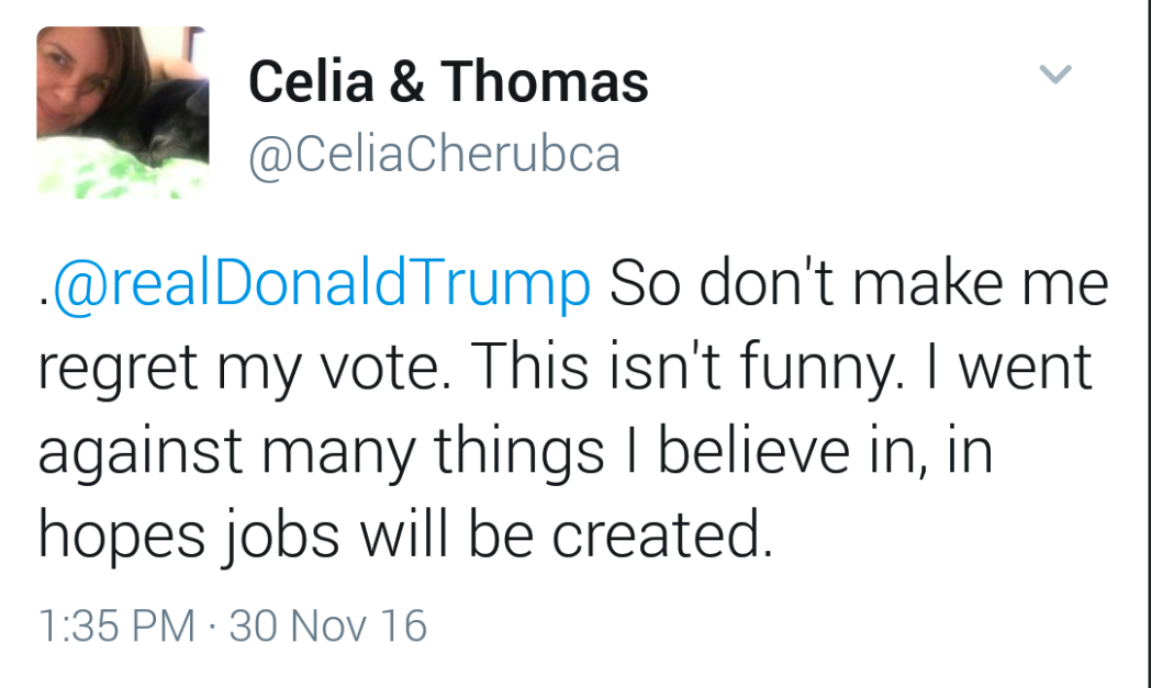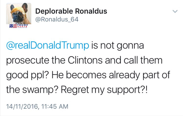 And Trump hasn’t even become president yet. It’s going to be a bumpy ride for these supporters. Welp. Tough break.