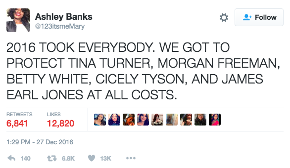 Help 2016 catch these hands if it goes anywhere near Betty White! If she’s okay with it I will fly to where ever Betty White is and keep her safe ’til Jan 1, 2017. Now, assuming she doesn’t want a strange Greek standing guard outside her door all monies will be donated to the Spartanburg little theater to help craft new stars of stage and screen to carry mantle of the legends that have left is this year.