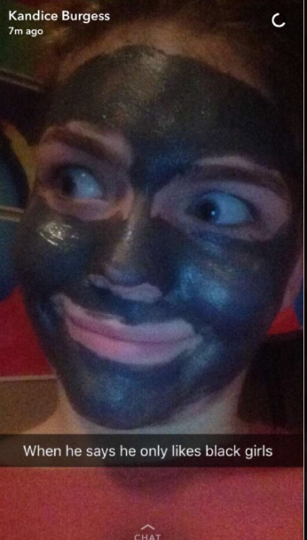 Now, another student who was under fire for wearing blackface on Snapchat has come out to apologize following the incident. Kandice Burgess posted a vile pic on Snapchat with the caption, “When he says he only likes black girls.”