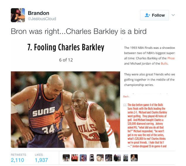 In case you missed it, LeBron James let off the chopper and sent Charles Barkley back to Fudrucker’s with a bevy of insults you can read here. Barkley’s feelings are definitely hurting right now and the internet was all over it.
