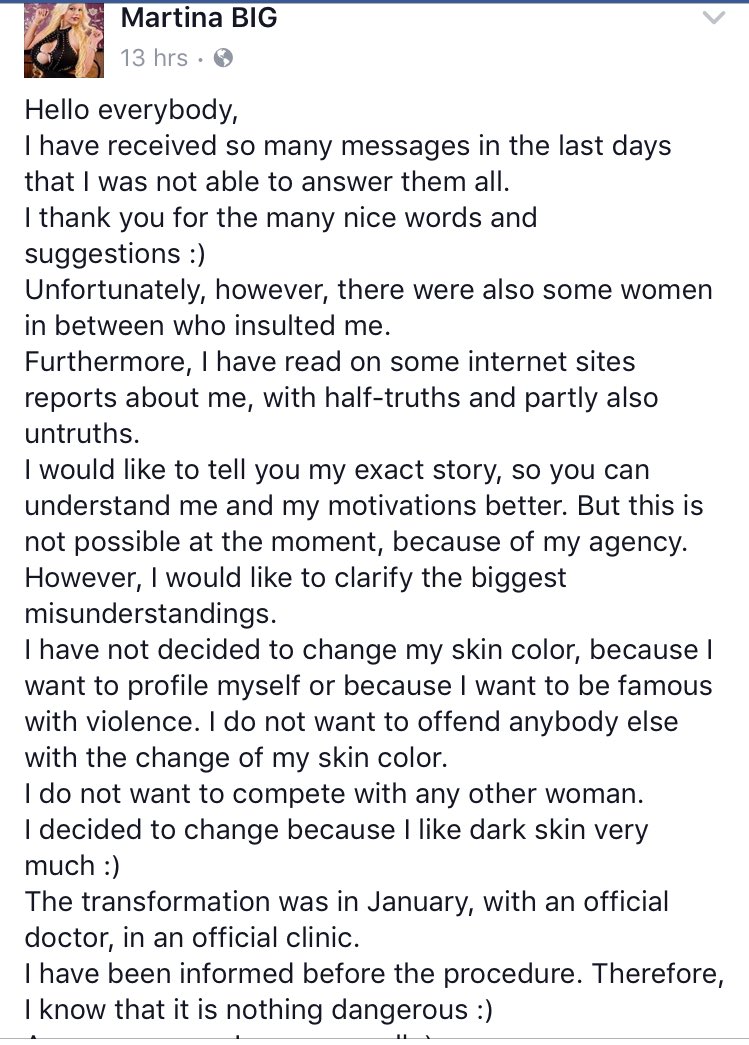 Life is crazy. The world is crumbling. America is burning. Bizarro Beckys like Martina BIG (who apparently suffers from a severe form of Dolezal disease) are paying good money for crispy transracial transformations into “Black women” disguised as “tans.” Yea, you can officially put 2017 in rice and this “super-tanned Barbie doll” is the last straw.