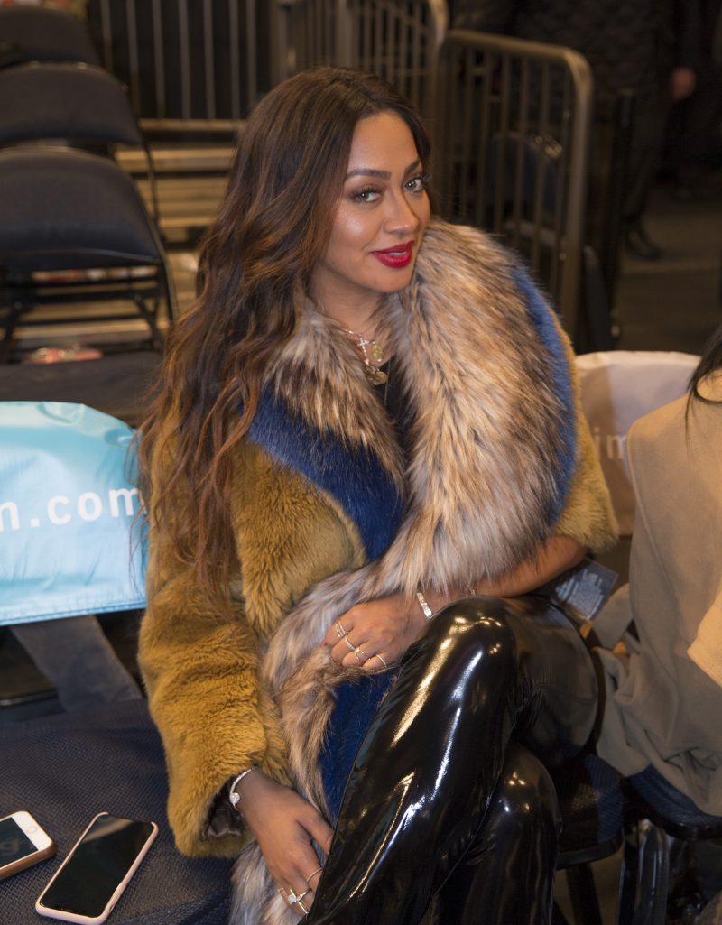 Seems like it’s been awhile since we’ve seen La La at one of Melo’s games, but the actress was spotted court side at Saturday’s match between Melo’s Thunder and his old Knicks squad.