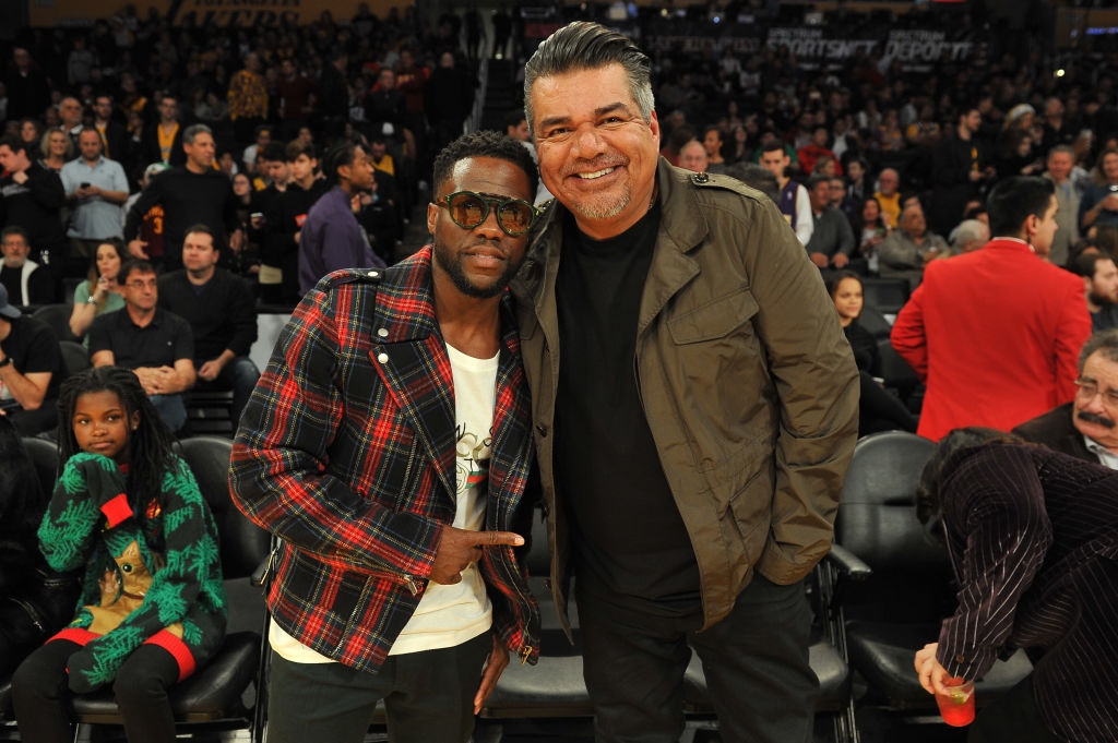 Kevin posed for a photo with George Lopez, who brought daughter Mayan to the game