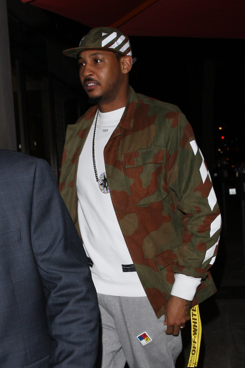 Melo is a fashionable guy too, he was photographed heading to Craig’s Restaurant wearing Off White.