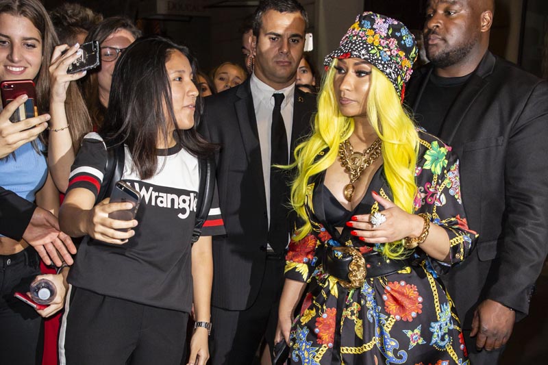 Apparently time has soothed things over some, either that or the female rappers have managed to keep enough distance from each other that the events in Milan have gone over smoothly. Nicki Minaj was at all the Versace events this week, including the show on Friday September 21. She also attended a dinner for Versace and the afterparty. The 35-year-old rapper also watched shows earlier this week for Fendi and Diesel.
