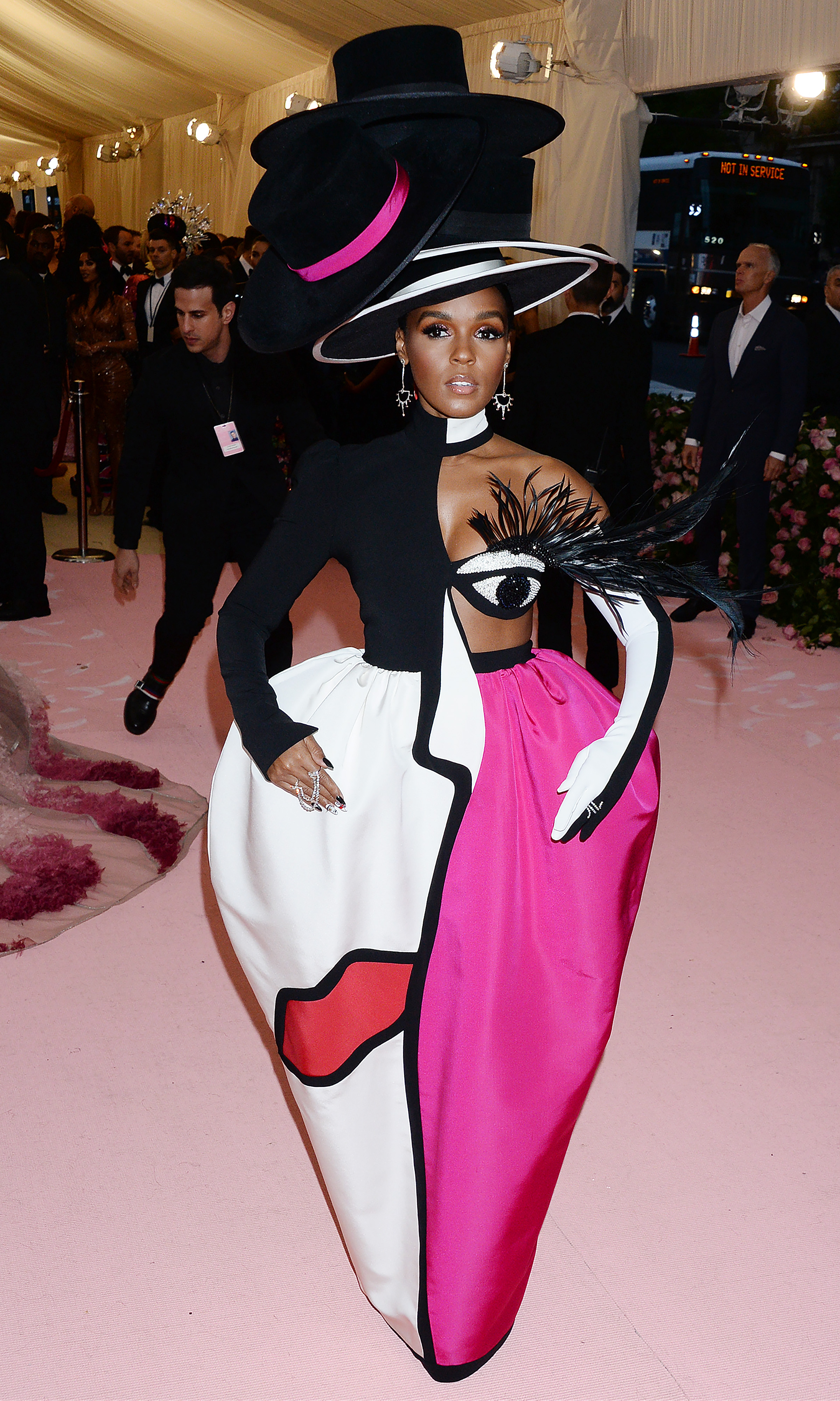 Janelle Monae wore a Christian Siriano/Smooth Technology look that included four stacked top hats and an animated eye that actually winked at all of our broke a$$es sitting at home.