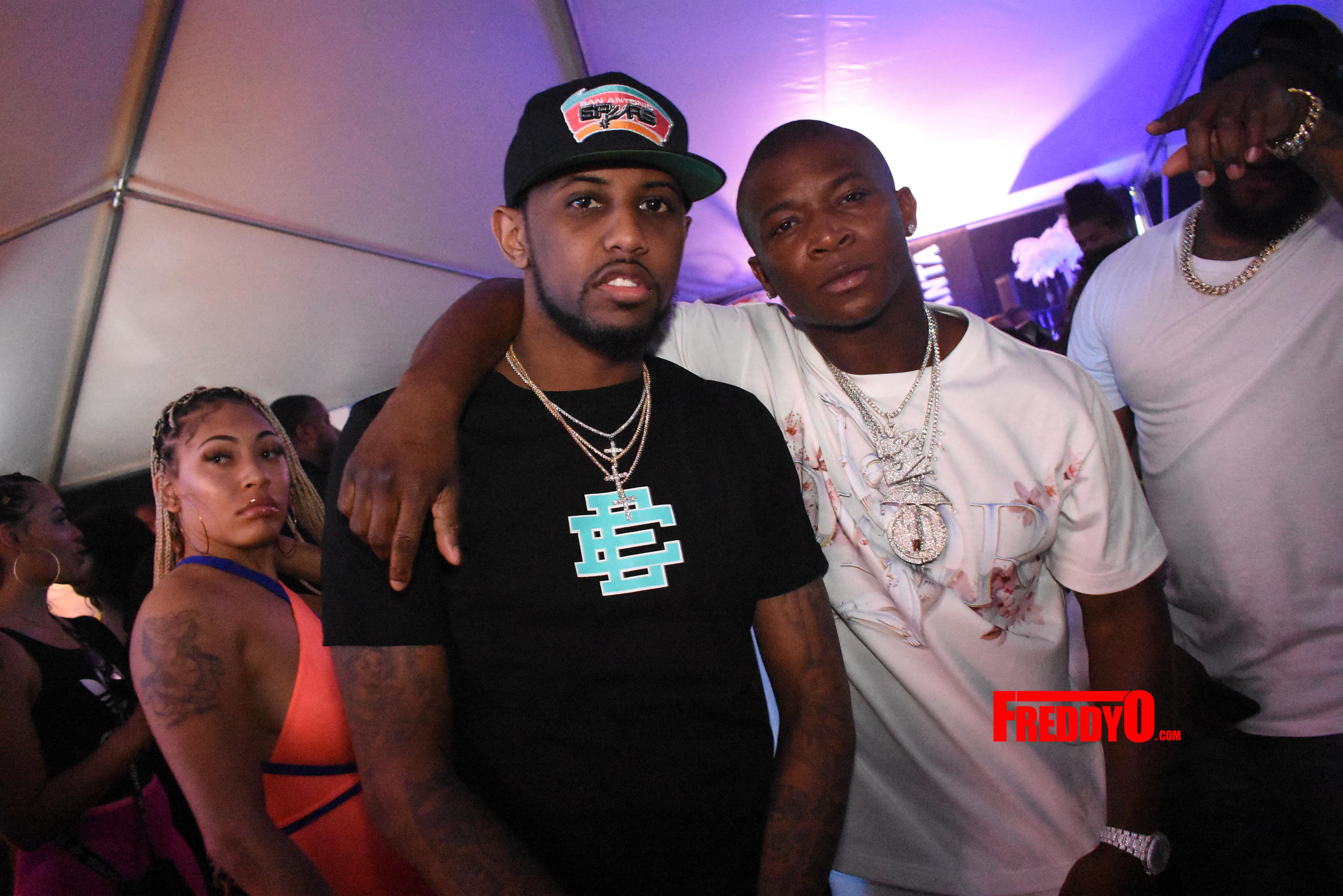 Dave East, whose nudes allegedly leaked, was in attendance at the pool party. He posed with “King Of R&B” Jacquees.