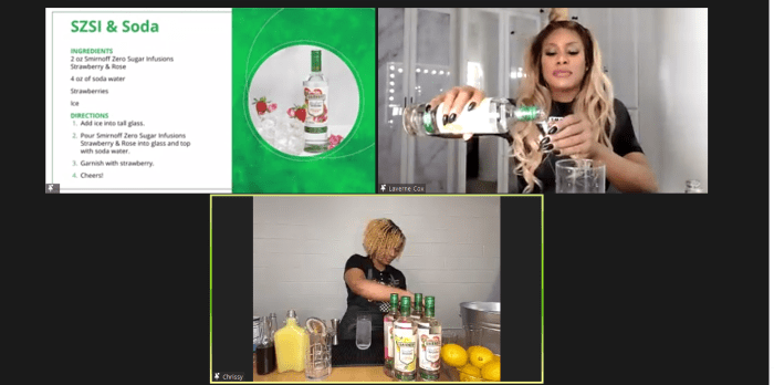 After the class, participants hydrated (responsibly with water!) before joining Smirnoff, SideBarre, and Laverne at the Smirnoff Bar for an intimate Q&A session followed by a virtual happy hour with the NEW Smirnoff Zero Sugar Infusions Lemon & Elderflower, as well as some alcohol-free mocktail options.