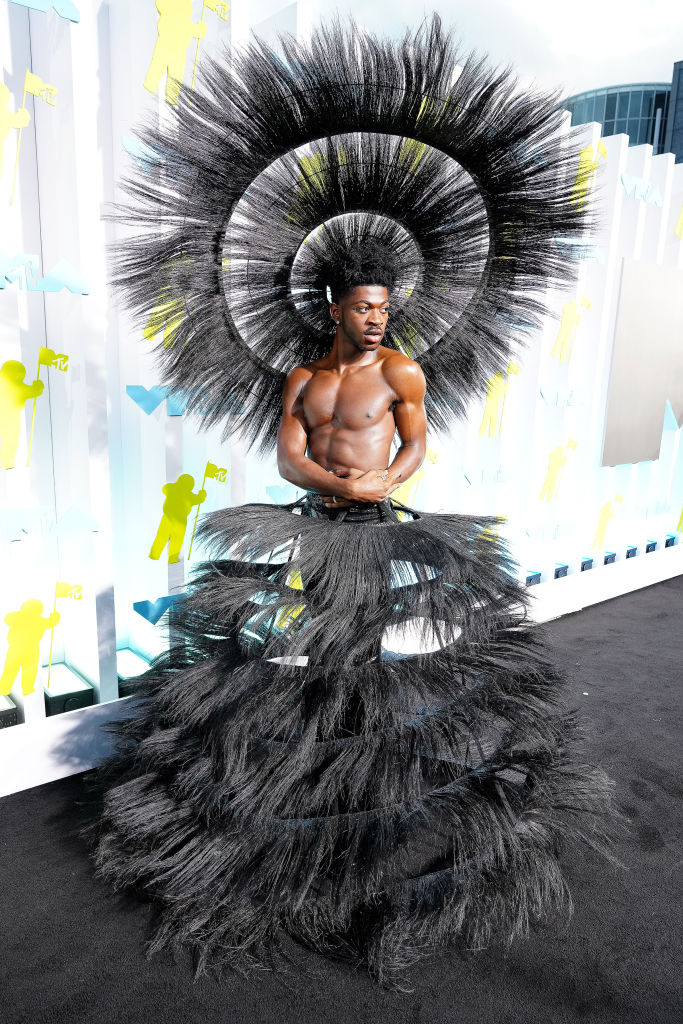 and Lil Nas X rocked a Harris Reed headpiece, skirt, and Saint Laurent pants.