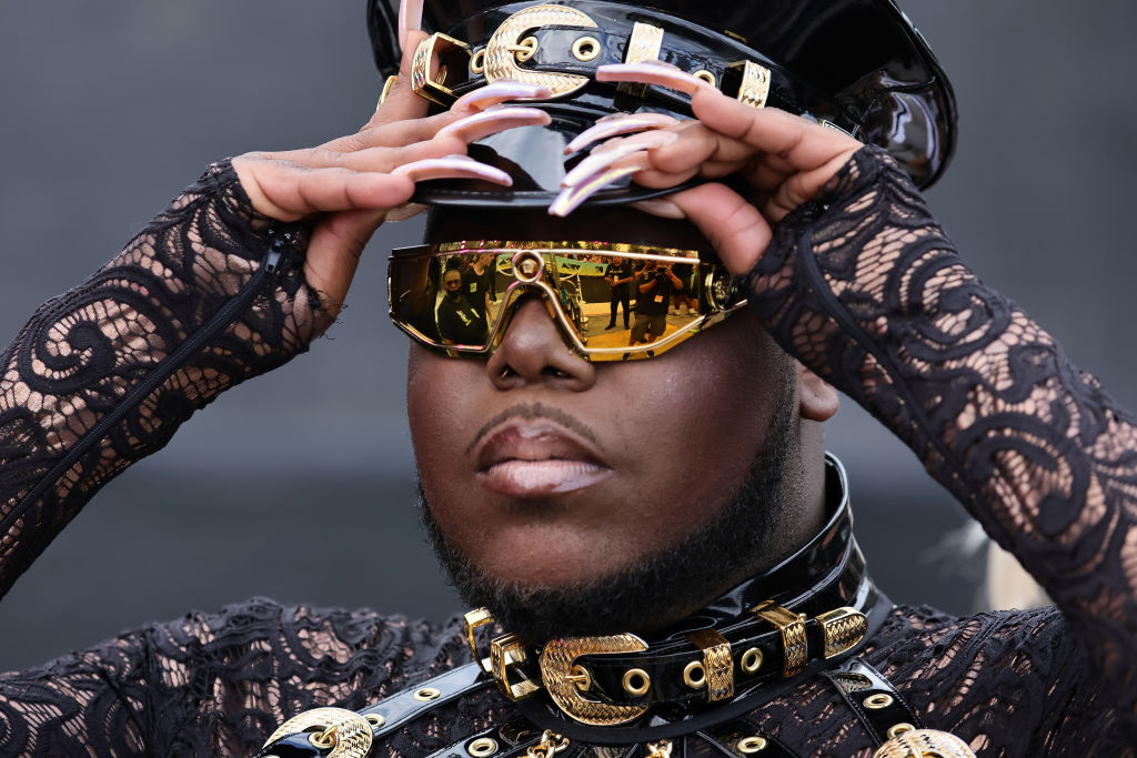 Another style standout was Saucy Santana who kicked off the pre-show in a lacey black catsuit with a leather corset and metallic details.