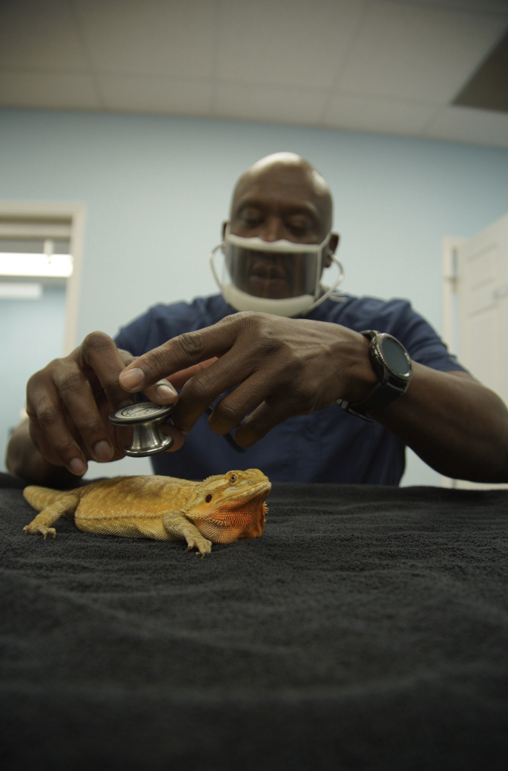 Dr Hodges: For me, I’ve always had an interest in aquatics. I would go down as a kid and catch tadpoles, frogs, turtles, and fish, and do different things. So, I thought I would end up being the Black Jacques Cousteau. So, I majored in marine biology and did those things. As I got to the end of my senior year, I decided I really like all animals. So, now I get to work on fish and aquatics, as well as dogs, cats, camels, and all those different things.