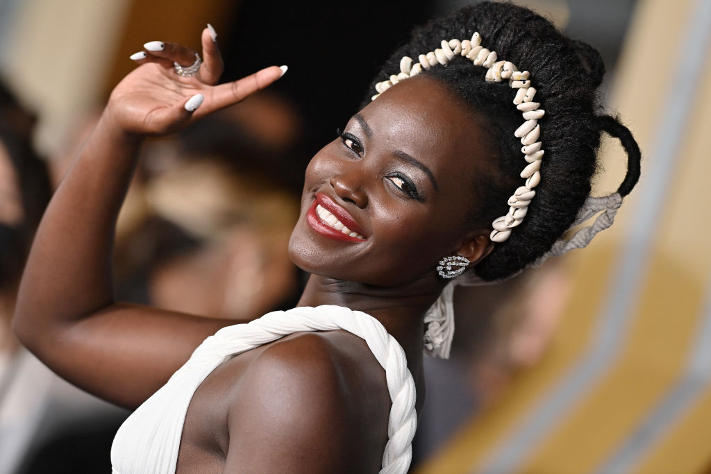 Lupita Nyong’o who plays Nakia joined several stars in wearing white, the color that Wakandans wear during T’Challa’s funeral procession.