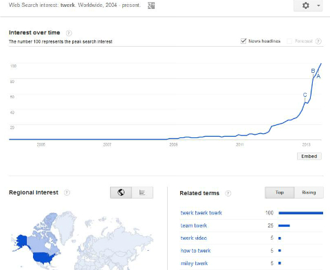 8. Twerking (which is 15+ years old) is more popular in 2013 than ever before.