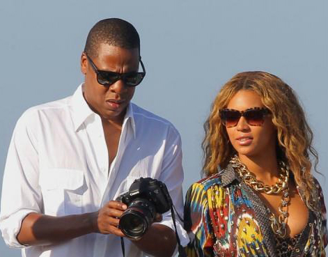 Hov: “Why won’t this isht take pics?! *shakes camera* Beyonce:“Babe, the cap’s still on” Hov: “Oh…you right” [bossip_ad_a]
