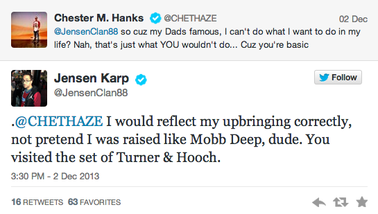 Jensen Karp Disses Tom Hanks’ Rapper Son Chet Haze On Twitter