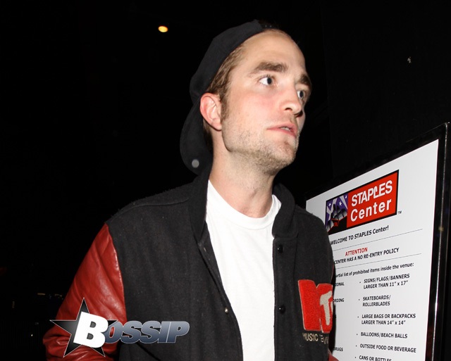 **NO Australia, New Zealand** Los Angeles, CA – Although he is known to frequent the indie rock circuit, tonight Robert Pattinson attended Beyoncé: The Mrs. Carter Show World Tour held at Staples Center in Los Angeles. The “Twilight” star looked cool as he arrived solo in a vintage MTV letter jacket, backwards ball cap, jeans and a pair of tattered high tops.